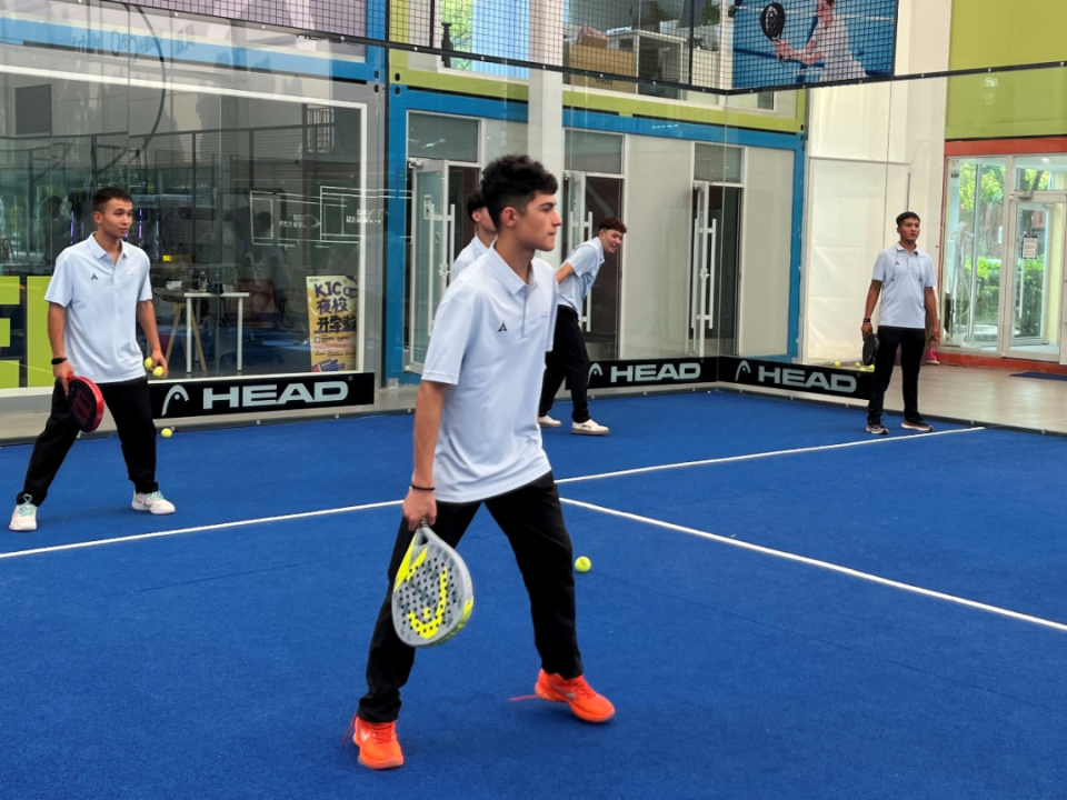 位于江湾体育中心的江湾国际板式网球中心,是东亚地区最大的板式网球基地,拥有8片符合国际标准的板式网球场地,这其中包含2片室外场地。对于这些青少年来说,网球经常能看到,但板式网球还是第一次听说。